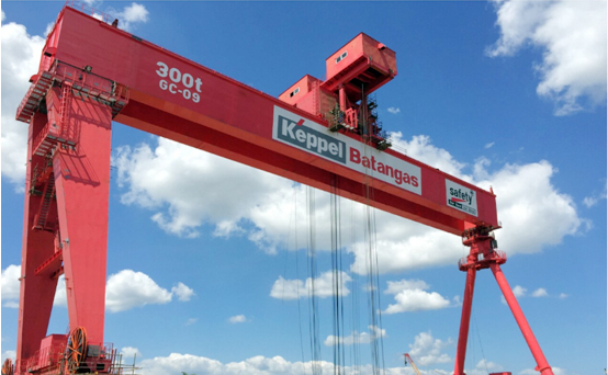S300t×79m造船門式起重機(jī)適用于造船廠在船塢、船臺(tái)的船體制作場(chǎng)所。具有大型構(gòu)件吊運(yùn)、分段空中翻身等功能。對(duì)于船體的翻身、合攏作業(yè)等特點(diǎn)尤為突出。龍門吊跨度大、機(jī)構(gòu)多、系統(tǒng)復(fù)雜,經(jīng)全面科學(xué)的分析,采用成熟的新技術(shù),保證CS300t龍門吊系統(tǒng)優(yōu)化、安全、高效和節(jié)能。300 t龍門吊由上小車起升機(jī)構(gòu)I、Ⅱ,下小車主起升機(jī)構(gòu)Ⅲ ,副起升機(jī)構(gòu),下小車行走機(jī)構(gòu),大車行走機(jī)構(gòu)和上小車鉤移機(jī)構(gòu)組成。