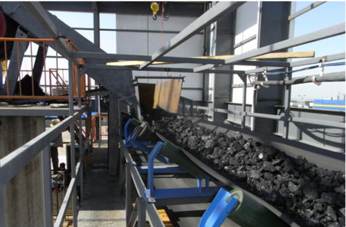某煤礦屬于榆林市榆陽區(qū)直屬煤礦,鑒于之前的煤炭提升效率低下的問題,北京天拓四方科技有限公司工程師對煤礦主提升井進行的升級改造。皮帶機長L=650m (斜長)、坡度16°、巷道寬5m、帶寬 B=1000mm、帶速 v=2.5m/s、雙電機地面驅(qū)動距井口約15m 左右、電機功率 2×250KW、電壓660V 。