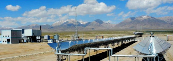 太陽(yáng)能光熱發(fā)電是指:利用大規(guī)模陣列拋物或碟形鏡面收集太陽(yáng)熱能,通過(guò)換熱裝置提供蒸汽,結(jié)合傳統(tǒng)汽輪發(fā)電機(jī)的工藝,從而達(dá)到發(fā)電的目的。采用太陽(yáng)能光熱發(fā)電技術(shù),避免了昂貴的硅晶光電轉(zhuǎn)換工藝,可以大大降低太陽(yáng)能發(fā)電的成本。而且,這種形式的太陽(yáng)能利用還有一個(gè)其他形式的太陽(yáng)能轉(zhuǎn)換所無(wú)法比擬的優(yōu)勢(shì),即太陽(yáng)能所燒熱的水可以儲(chǔ)存在巨大的容器中,在太陽(yáng)落山后幾個(gè)小時(shí)仍然能夠帶動(dòng)汽輪發(fā)電。發(fā)電量50兆瓦。