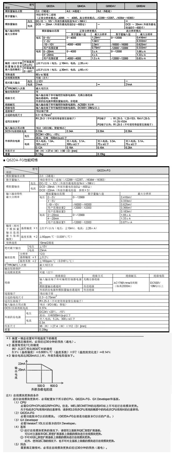 ■ Q68DAV Q68DAI Q62DA Q64DA性能規(guī)格